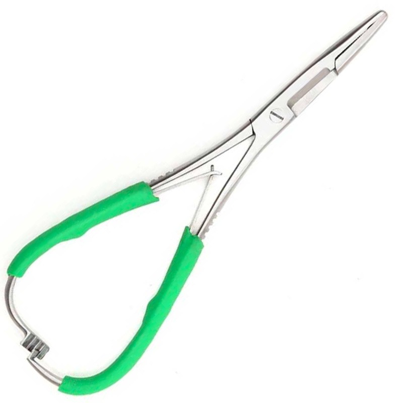 Die geraden Backen haben flache Enden mit einem gezahnten hinteren Teil und einer Nadel.