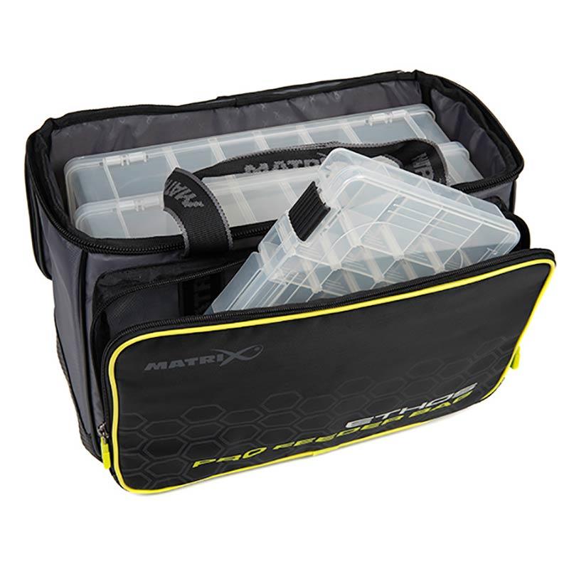 • eine kleinere Box für Feeder / Zubehör in der vorderen Reißverschlusstasche