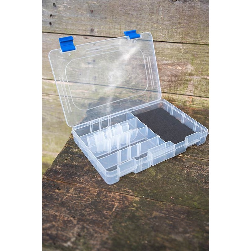 eine Aufbewahrungsbox, die es ermöglicht, Jigköpfe, kleine Köder und Zubehör zu verstauen. ideal für das feine Köderangeln, wenn es darum geht, Barsche, Hechte, Zander, Forellen und Rapfen zu suchen.