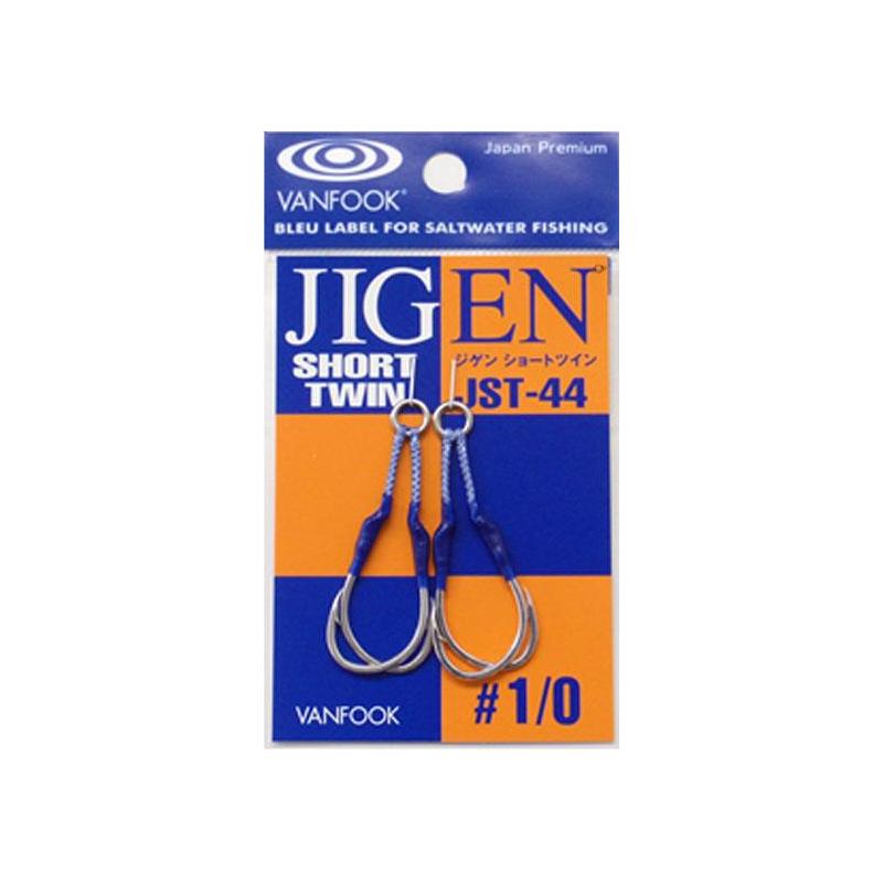 Doppelte Assist-Haken, für Doppelmontagen beim Slow-Jigging konzipiert, bestückt mit Haken Jigen /jh-10, aus kräftigem, kurzschaftigem Eisendraht, gut geeignet für mittelgroße Fische (bis zu 10/15KG), Spitzen gegenüberliegend, um Hänger am Grund zu vermeiden und einen perfekten Halt beim Anschlagen der Fische zu gewährleisten.