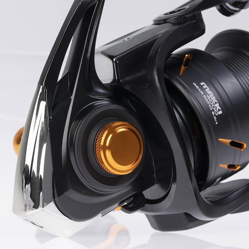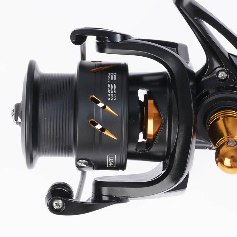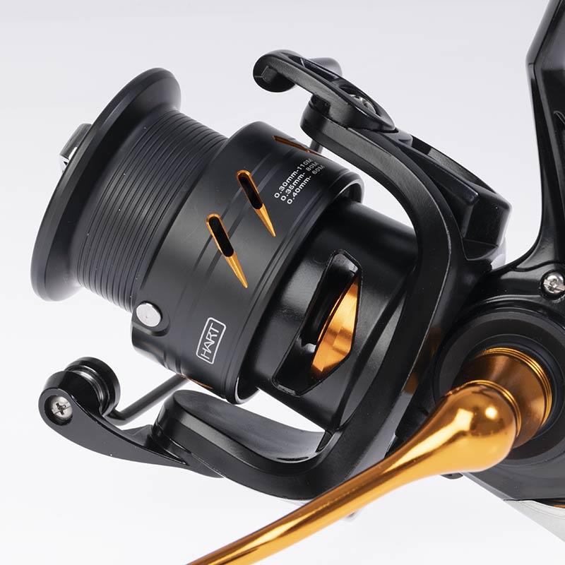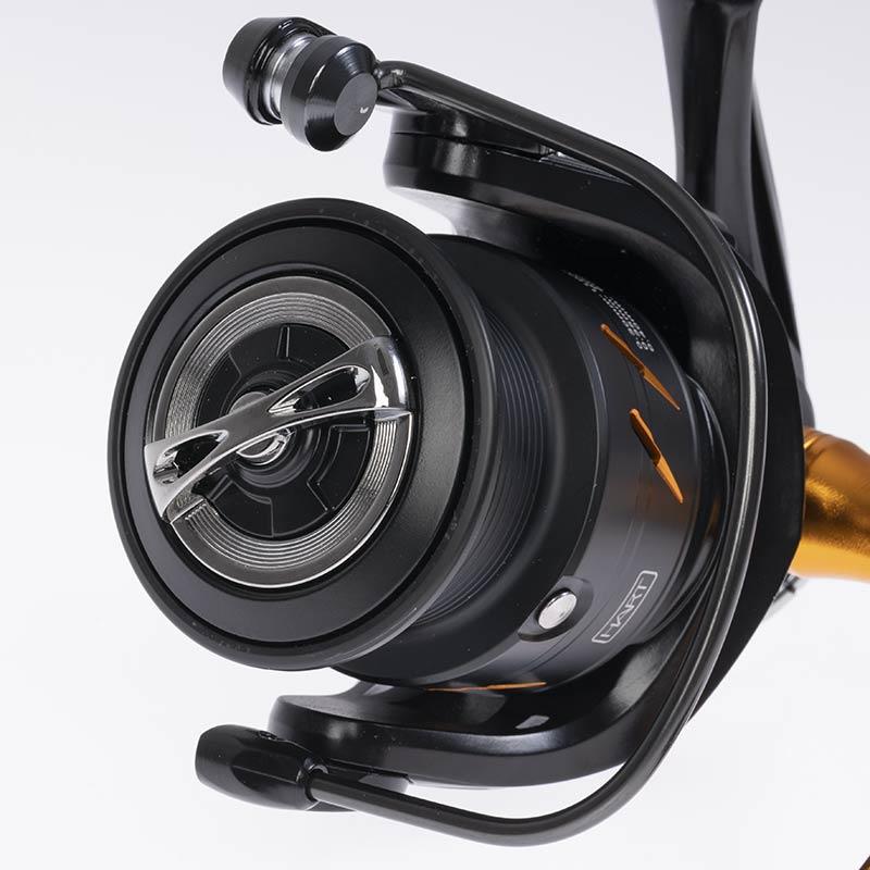 Angelrolle neuester Technologie mit Gehäuse aus speziellem Aluminium für Spinning und leichtes Jigging. Abgedichtetes Aluminiumgehäuse. Rotor aus Graphit zur Gewichtsreduzierung bei gleichzeitigem Erhalt der Festigkeit. Sehr langlebiges Innengetriebe mit Ritzel und Kronrad in mikromodularer Verzahnung für einen geschmeidigen und effizienten Lauf. Extra verstärkte Hauptachse, um Verwindungen beim Drill zu vermeiden. Spezialspule aus hochfestem Aluminium, SHALLOW-Profil, mehrfach gelocht. Gefräste Kurbel aus Aluminium. Praktischer T-förmiger Knauf. Extra dicker Schnurfänger mit übergroßem, integriertem Schnurführer. 7 hochwertige Lager: 6 Kugellager aus Edelstahl und 1 Endlos-Anti-Reverse. Wasserdichte Bremse mit gekreuzten Scheiben aus Carbon und Edelstahl.