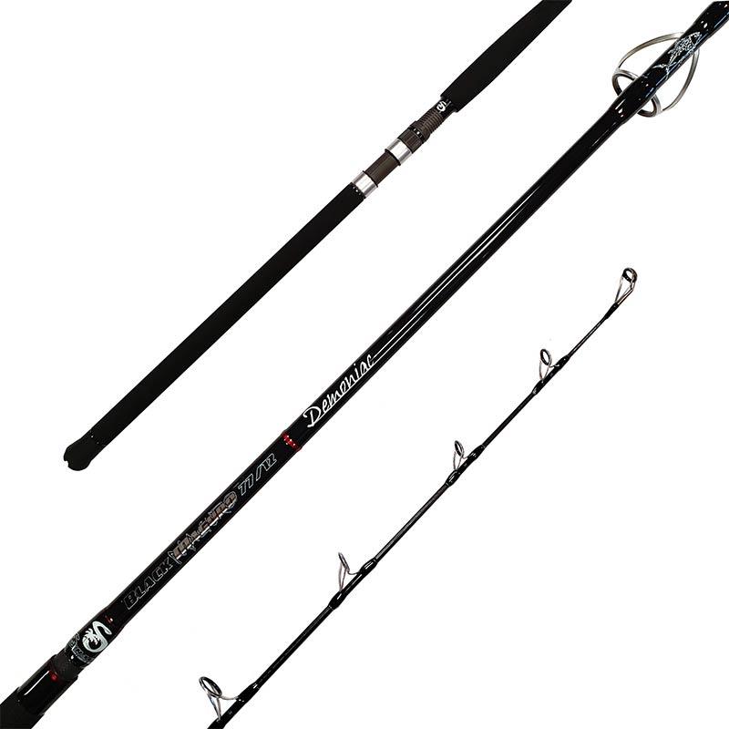 Wie die anderen Black Maguro auch ist die BLACK MAGURO Demoniac 77/12, die aufgedrehte kleine Schwester der Caster 710/12, ebenfalls für den Fang von Thunfischen bestimmt... von ganz groOßen Thunfischen! Bei einer Schnurstärke von maximal PE#12 verfügt die BLACK MAGURO Demoniac 77/12 über eine unglaubliche Kraftreserve und besitzt ebenfalls eine weiche Spitze, die ultra-einfache Würfe ermöglicht. Diese Weichheit und ihre sehr spezifische Aktion machen ihre 2.31m zu einem echten Werkzeug im Kampf gegen die großen Blauflossen-Thunfische, das jeden Antritt, selbst die kräftigsten, ohne Ermüdung für den Angler abfedern kann. Voll ausgestattet mit Fuji MN- und KW-Ringen und einem Fuji BACK STOP-Rollenhalter werden Sie sicher auch von dieser Rute überrascht sein, die zwischen Spielzeug, Werkzeug und Schmuckstück steht!! Endlich können Sie ULTRA kraftvoll angeln, ohne sich "den Rücken und die Arme zu brechen"...