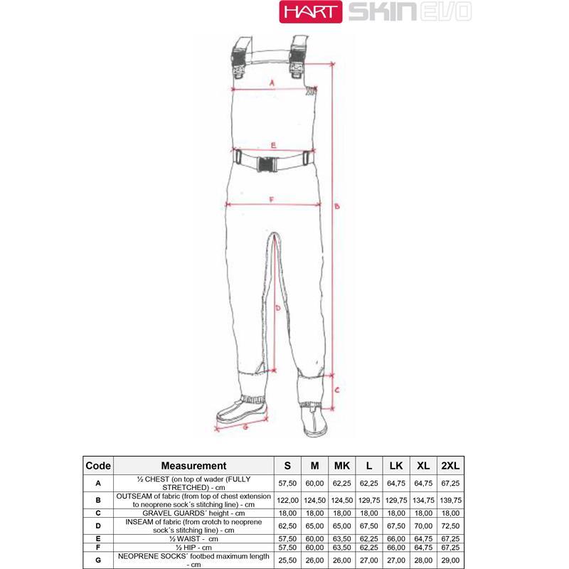 Atmungsaktive Wathose aus 3-lagigem laminiertem Gewebe. Versiegelte Nähte. Große äußere Brusttasche mit wasserdichtem Reißverschluss. (ACHTUNG : diese Tasche ist weder wasserdicht noch tauchbar und schützt daher die darin befindlichen Gegenstände nicht unter Wasser). • Gemischte Träger aus Nylon und Elastik. Frontösen für Zubehör. • Seitliche Elastikeinsätze für höheren Komfort. • Elastische Gamaschen aus atmungsaktivem Gewebe mit Haken. • Verstärkte Neopren-Füßlinge. • Verstellbarer Nylon-Gürtel mit Neopren-Bauchtasche. • Transporttasche.