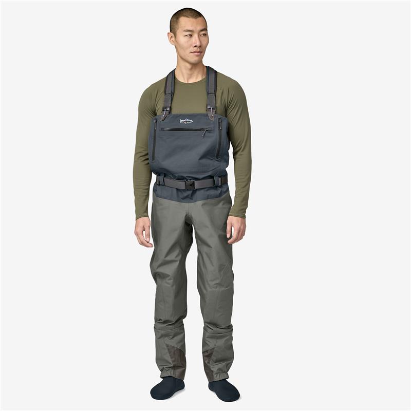 entwickelt, um perfekte Passform, Bewegungsfreiheit und Haltbarkeit zu vereinen, verfügt das dickste und technischste unserer Wathosen über verstellbare Träger, die sich schnell lösen lassen, um den oberen Teil bis zur Taille umzulegen. dieses Modell verfügt außerdem über eine wasserdichte Innentasche, eine zippbare Handwärmertasche mit Klappe im Känguru-Stil, herausnehmbare Knieschützer und ergonomische Fußlinge.