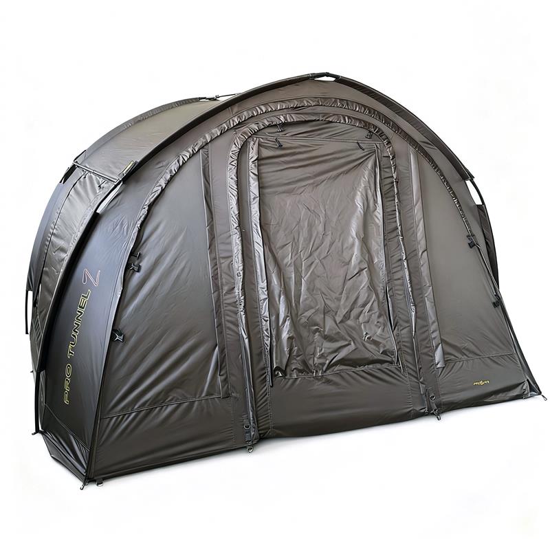 Der proelite pro tunnel z ist das ideale Biwak für zwei Angler, die nach Platz, Schutz und Leichtigkeit suchen, ohne die Qualität zu opfern. Sein optimiertes Design bietet ein überraschendes Innenvolumen in Tunnel-Form, eine fortschrittliche Wasserdichtigkeit und ein geringes Packmaß, wenn es zusammengefaltet ist, um den Transport zu erleichtern.