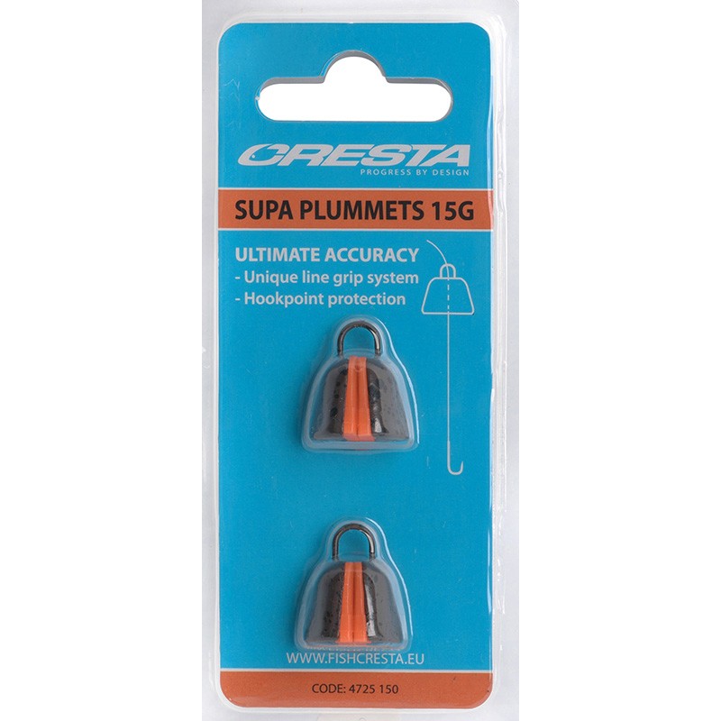 Die Supa-Bleie von Cresta sind auf dem Markt sehr geschätzt. Der Plummet ist mit einem einzigartigen weichen Einsatz ausgestattet, der seine gesamte Höhe abdeckt und sowohl die Schnur als auch den Haken schützt, was eine perfekte Montage ermöglicht, um die "tote Tiefe" an einer Pose zu messen.