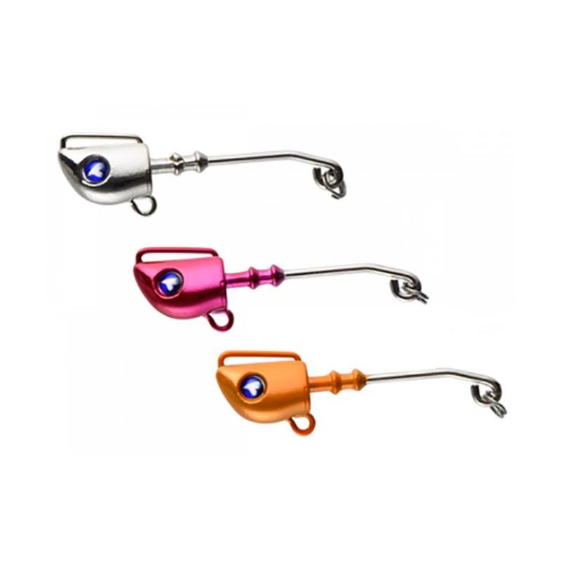 • 3 Bleiköpfe (chrom, rosa und orange) und 2 Drillinge