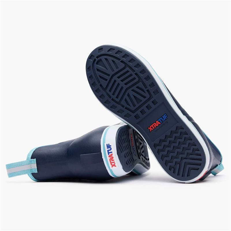 Die Ankle Deck Boot-Kollektion wurde speziell für Meeresangler entwickelt. Da ein Angler ständig in Bewegung ist, sind diese Stiefel als echtes Performance-Equipment konzipiert, um den ganzen Tag über leistungsfähig zu bleiben. Ihr leichtes Design basiert auf einer Chevron-Außensohle mit rutschfester Lauffläche, abgeleitet von den Legacy-Modellen, die einen ausgezeichneten Grip auf nassem Deck oder glatten Flächen gewährleistet. Leicht anzuziehen und einsatzbereit, sind sie ideal für alle Formen des Angelns vom Boot. Diese maritime Version zeichnet sich durch hellblaue Akzente an Sohle, Zuglaschen und Futter aus, für einen gepflegten Look am Wasser.