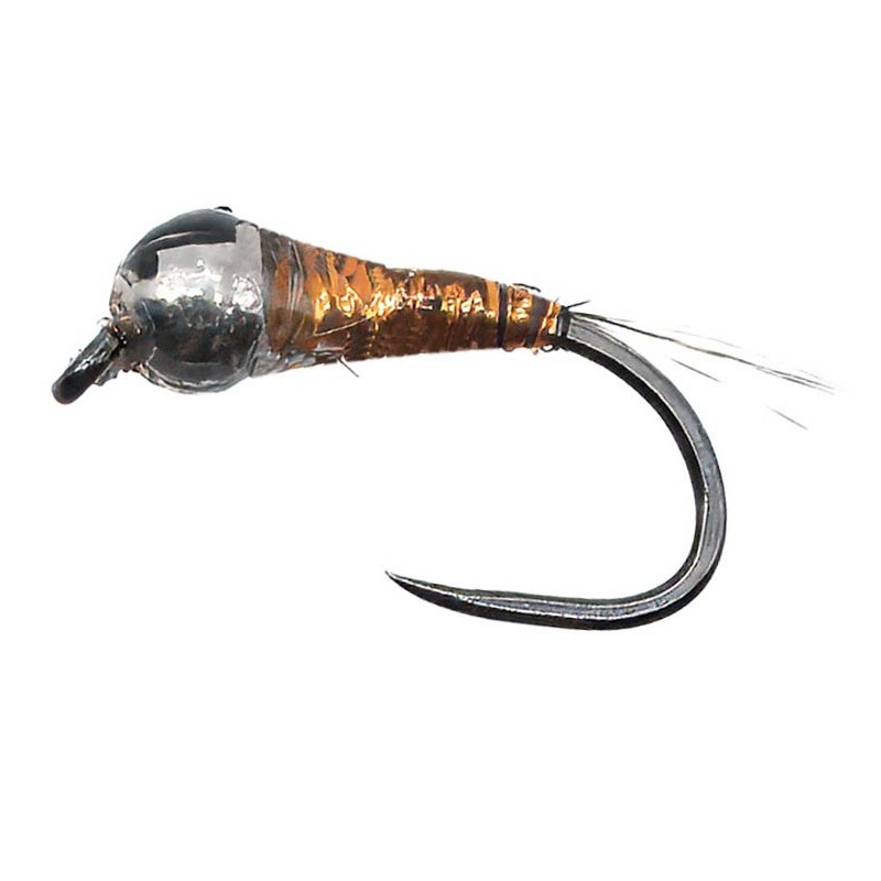 Spanische Ursprungsnymphen montiert mit einer Tungstenkugel. Sie sind eher für das Nymphenfischen am Faden vorgesehen, ihre glänzende Tonart erweist sich als sehr wirksam. Diese Serie ist mit wurmlosen Haken montiert.