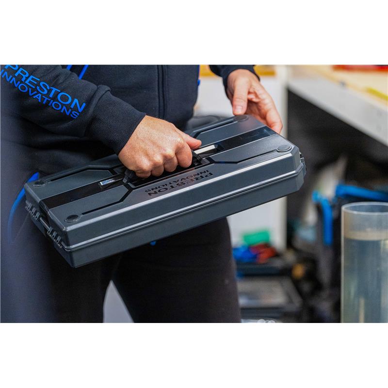 die montage-station ist perfekt für den gebrauch zu hause oder ideal für festivals, wo sie während der reise montagen anfertigen müssen. • kompakt für den transport • aufbewahrungsbereiche für alle komponenten zur herstellung von montagen • robuste konstruktion • kann verwendet werden, um montagen und hakengrößen zu befestigen • messmarkierungen, die eine präzise platzierung der bleie ermöglichen