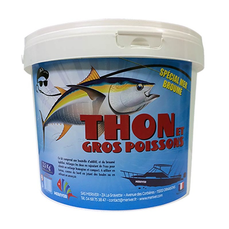 Dieses spezielle Broumé für Thunfisch und Großfische, ultraeffektiv, bereits von der Zeitschrift « Pêche en mer » ausgezeichnet, wurde maßgeschneidert für das Angeln vom Ufer oder vom Boot. In einem Eimer als Set zur Zubereitung präsentiert, enthält es ein gefriergetrocknetes Pulver mit einem separaten Additiv für eine längere Haltbarkeit. Das Broumé Spécial Thon et Gros poissons wurde in enger Zusammenarbeit mit unseren Hochsee-Angelteams entwickelt. Diese Anfütterung erzeugt eine duftende Wolke, die bis zu 15 m unter das Boot absinkt, ohne in ein Netz gefüllt werden zu müssen. Beim Treibangeln folgt die ziehende Duftwolke natürlich der Route Ihres Bootes und Ihren Leinen. Mit einem Eimer decken Sie im Durchschnitt einen halben Angeltag ab.