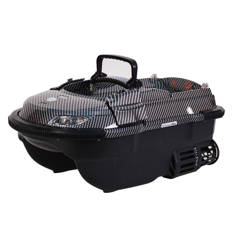 Eigenschaften: • Navigation vorwärts - rückwärts - links - rechts • Scheinwerfer • Rücklichter • Auswerfen des Hakens und des Köders • Gierkorrektur (Möglichkeit, die Navigationsposition zu korrigieren) • Autopilot-Steuerung bis maximal 3 Minuten • 3 Geschwindigkeiten • Kompasskalibrierung • GPS mit 16 Wegpunkten • Wasserdichter Einhandsender