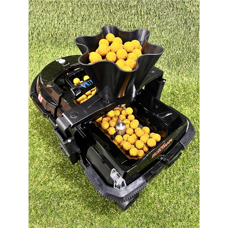 Dieser Streuer ermöglicht es Ihnen, Ihr Futter (Boilies, Partikel, Pellets) auf einzigartige Weise um Ihre Bouture zu verteilen. Er kann einfach am Actor, Actor Plus und Vulcan angebracht werden, später wird es außerdem eine Version für den Leader geben.
