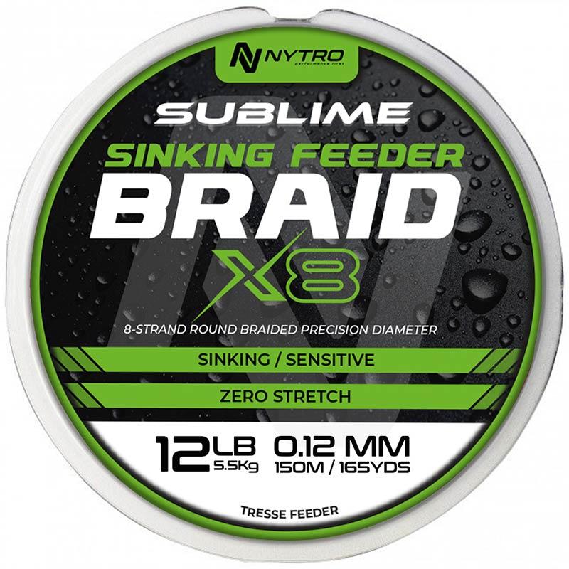 NYTRO SUBLIME X8 SINKING BRAID ist ein schnell sinkendes 8-fädiges Geflecht von hoher Qualität, das speziell für das Feederangeln entwickelt wurde. Dank seiner sehr guten Sinkfähigkeit ist dieses runde, gleichmäßige 8-fädige Geflecht mit glatter Oberfläche dunkel gefärbt, bietet geringe Dehnung und eine hohe Knotenfestigkeit; es ist sicherlich das ideale Feeder-Geflecht für weite Würfe oder für präzises Angeln bei schwer zu erkennenden Bissen. Erhältlich in drei Durchmessern (0,08 – 0,10 und 0,12) für die häufigsten Situationen und auf Spulen von 150 m