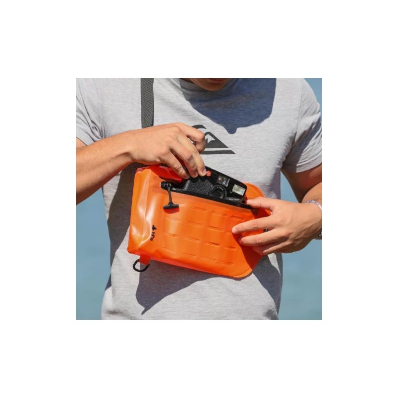 Diese große wasserdichte Tasche, ideal zum Schutz von Geldbörse, Schlüsseln und Smartphone, verfügt über einen Reißverschluss IP 68, der zuverlässigen Schutz für Ihre persönlichen Gegenstände bei Aktivitäten in feuchter Umgebung bietet.