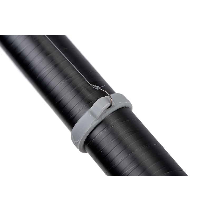 Eigenschaften : • Entwickelt, um Ihnen zu helfen, Ihre Ausrüstung in den oberen Kits zu verstauen, wenn Sie auf dem Ansitz sind. • Kann verwendet werden, um eine Montage mit einem Haken während des Fischens oder beim Transport zu sichern • Sie können auch verwendet werden, um die Montagen bis ans Ufer zu transportieren, bevor die Vorfachlänge hinzugefügt wird, dank des raffinierten Schlaufenhakens. • Hergestellt aus langlebigem Gummimaterial • Zwei Größen passen für alle Durchmesser der oberen Kits • Dezente graue Farbe
