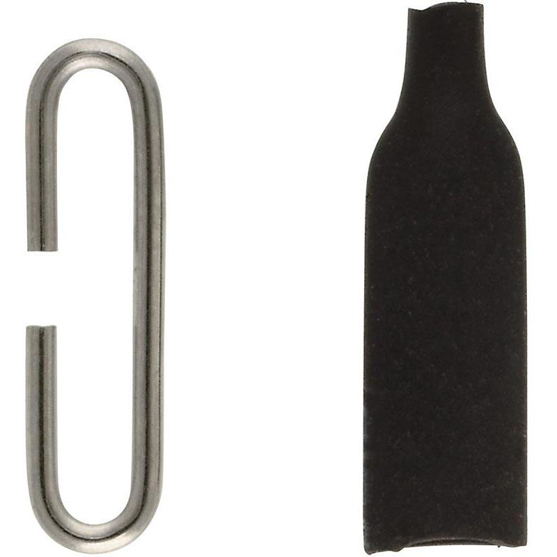 klammern mit schwarzem Schrumpfschlauch ausgestattet. sehr praktisch, um Montagen oder Bleie in wenigen Sekunden zu wechseln. 3 Größen verfügbar : s, m und l. in einer Tüte mit 8 Stück verkauft.