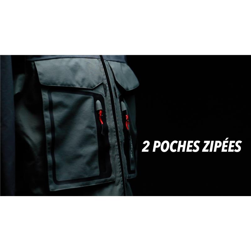 Diese technische Weste ist sowohl wasserdicht als auch atmungsaktiv, insbesondere dank ihrer dreilagigen Breath Tec-Membran. Ihre zwei großen Klappentaschen, ihre zwei Reißverschlusstaschen, ihre Zubehöraufhänger und ihr Rückenring machen dieses überaus funktionelle Produkt zu einem unverzichtbaren Bestandteil im Bereich der spezialisierten Bekleidung.