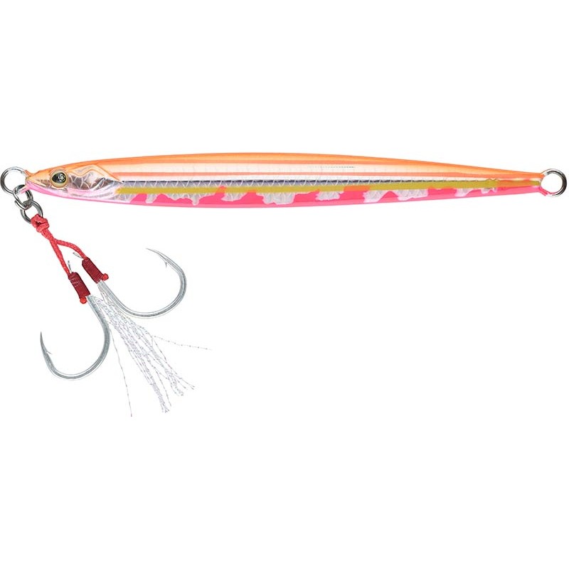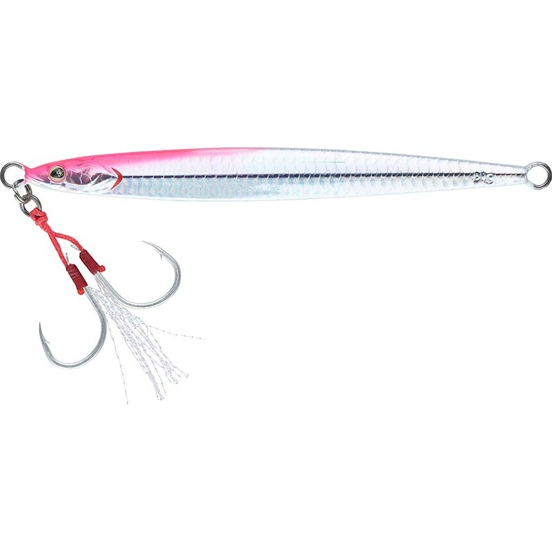 • deep jig en plomb équipé d'un double assist hook • profil asymétrique pour une descente rapide et une action papillonante • "rattlin" billes internes dans une chambre en métal • décor laser & film holographique • vernis renforcé • yeux sakura phosphorescents • couleurs phosphorescentes et réactives aux uv.