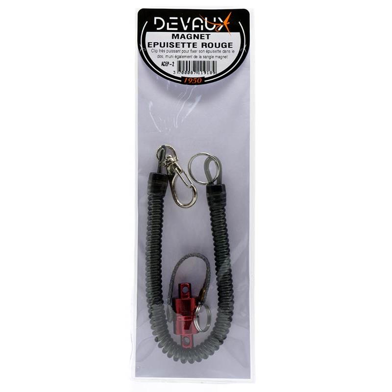 Starker Magnetclip, mit dem sich der Kescher durch einfachen Zug transportieren und abnehmen lässt. Wird mit der Spiralkordel DVX und dem Magnetgurt DVX geliefert.