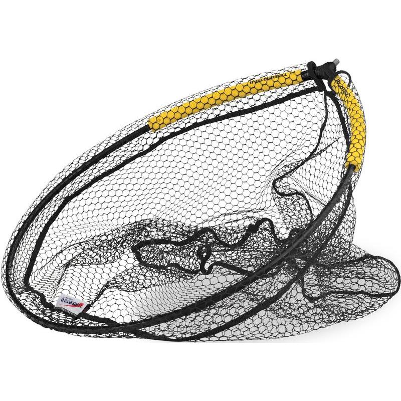 kescherkopf für große fische mit grobem, gummiertem maschennetz. die beiden schwimmkörper aus schaumstoff eva erleichtern das aufsetzen, indem sie die auftriebskraft des schaumstoffmaterials nutzen.