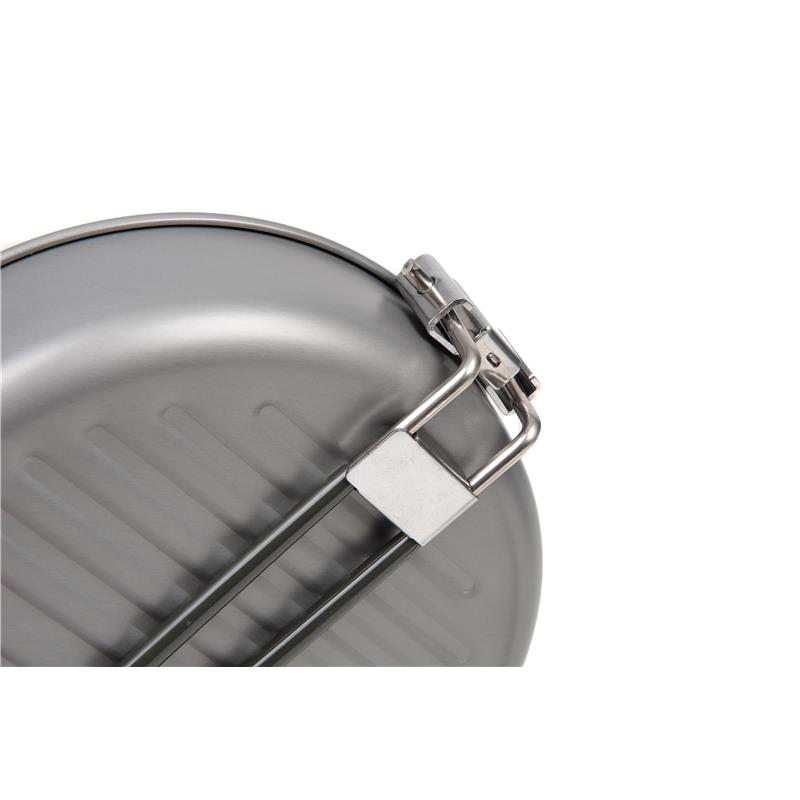 Das 4-teilige Kochset enthält einen Heat Transfer-Wasserkessel von 0,9 l und einen mittelgroßen Topf wie im 3-teiligen Set, jedoch mit einer größeren Pfanne und einem großen Topf, was es ideal für den Angler macht, der am Ufer gern ein Festmahl zubereitet. Wie beim 3-teiligen Set haben alle Teile eine dickere Wand und eine hochwertigere Antihaftbeschichtung. • Die Töpfe sind mit langlebigen, klappbaren Griffen ausgestattet, damit sie platzsparend verstaut werden können. • Der Wasserkessel lässt sich im kleinen Topf verstauen, der wiederum im größeren Topf verschwindet, welcher sich in der Pfanne befindet. • Wird mit einem Netzbeutel mit Kordelzug geliefert • Heat Transfer-Wasserkessel von 0,9L • Topf 168 mm x 98 mm mit Deckel – Volumen von 1,9 l • Topf 190 mm x 115 mm mit Deckel – Volumen von 2,8 l • Pfanne 197 mm x 46 mm – Volumen von 0,9 l