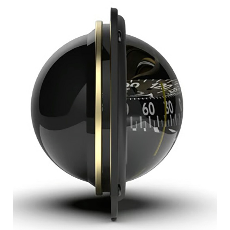 Die transparente Kapsel ermöglicht die Ablesung von außen und innen des Bootes. Nickwinkel unbegrenzt und Rollwinkel 30°. Außergewöhnliche Stabilität unter allen Bedingungen, unempfindlich gegenüber Fahrt oder Vibrationen, horizontale oder vertikale Ablesung. Die drei Alidades ermöglichen eine Kursablesung mit einer seitlichen Versetzung um 45°, die die Montage des Kompasses neben dem Steuerstand erlaubt.
