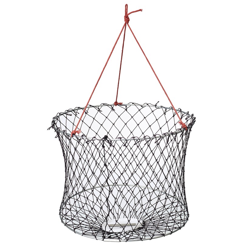 • Krebsfalle • Rahmen aus verzinktem Eisen (Durchmesser 3,0 mm) • Rahmendurchmesser : 26,5 und 24,5 cm • Braunes Nylonnetz 27 mm • Blei auf Köderschale aus Kunststoff mit Feder-Köderhalter