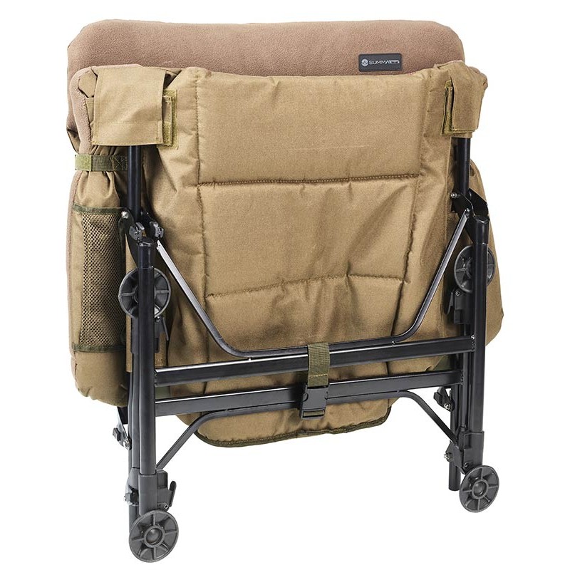 • Hochwertiger Level-Stuhl • Hohe und breite Rückenlehne für ausgezeichneten Halt • Sehr komfortable Sitzfläche • Fleece-Material an den Armlehnen und an der Kopfstütze für mehr Komfort • Atmungsaktives, wabenförmiges Material auf Sitzfläche und Rücken, um Wärmeentwicklung zu begrenzen • Ergonomische Armlehnen • Einfache Verstellung der Beine mit einer Hand durch einfachen Druck • Seitliche Zubehörtasche • System zum Arretieren der Standfüße • Abmessungen : Höhe der Rückenlehne 75cm, Breite 75cm Höhe der Füße 33cm-50cm • Gefaltet 75cm x 75cm x 18cm • Gewicht 6,7kg