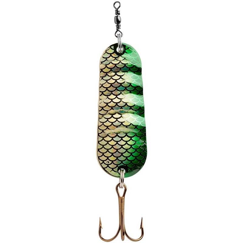 dieser löffel wurde erstmals 1949 auf den markt gebracht und gehört noch immer zu den "bestsellern". er ist perfekt, um räuberfische aufzuspüren. tatsächlich verzeichnet er eine große anzahl an hechten auf sein konto. am besten fangen sie ihn zunächst langsam ein, dann mit einigen beschleunigungen und indem sie einige recht kurze pausen einlegen. erhältlich in einer vielfalt von coloris und in drei größen.