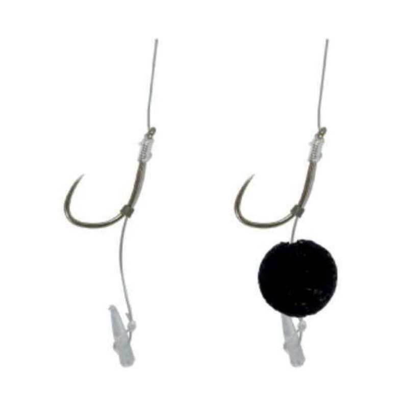 Feeder-Montage von großer Feinheit, hergestellt mit hakenlosen Haken OWNER 56741 Picket hook. Speziell für das Angeln in Karpfenanlagen konzipiert. Sehr vielseitiger, starker Eisendraht-Haken.Packung mit 6 montierten Haken.