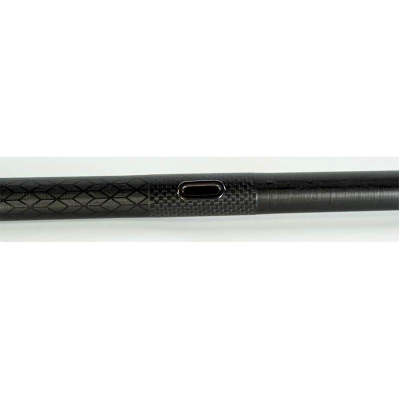 Eigenschaften : • 11,50 m tatsächliche Länge ohne Mini-Verlängerung • 10 m tatsächliche Länge mit Mini-Verlängerung • Monoblock-Spitze Ø 3,5 mm • Verstärkte Verbindungen • Hochmoduliger japanischer Carbon • Set mit Becher und Gewinde • Kompatibel mit R16-Serien am Segment Nr. 2