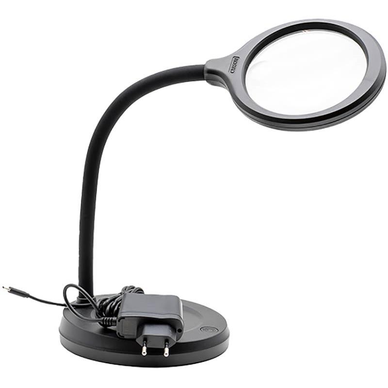 sowohl led-lampe mit zwei helligkeitsstufen und lupe mit zwei vergrößerungen 2x und 5x. dieses werkzeug optimiert ihre montagequalität. zwei arten der stromversorgung möglich: batteriebetrieb und netzbetrieb. wird ohne batterien geliefert (3 batterien lr6) vergrößerung 2x = +4 bis 5x = +16