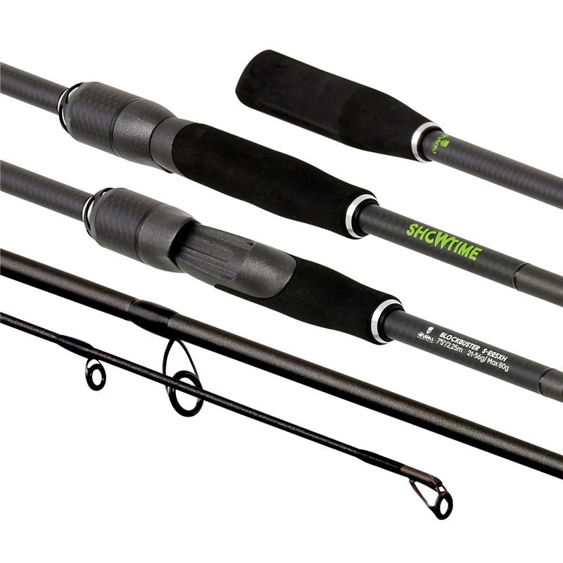 Diese Spinnrute SHOWTIME BLOCKBUSTER S-225XH ermöglicht das Angeln mit mittelgroßen bis großen Ködern, die für Hechte vorgesehen sind (SCUNNER 135S, ITOKA RUN 180S, GUNZILLA 160, G’BUMP 140 & 170, KING GAMERA…etc). Ziemlich leicht für den Leistungsbereich, den sie bietet, ermöglicht sie dem Hechtangler, sowohl offene Gewässer als auch verkraute Uferbereiche effektiv zu befischen. Ihre Länge ist ein echter Pluspunkt beim Angeln auf Distanz, ohne dabei die Handhabung und den Komfort bei der Köderführung zu beeinträchtigen. Ihre progressive Spitze bleibt schnell und vermittelt eine Fülle an Informationen und Gefühlen! Die anschmiegsame Ergonomie des Griffs ist besonders komfortabel. Die Befestigung der Rolle ist durch einen Rollenhalter mit Schnappverschluss gesichert. Fuji K Alconite-Ringe mit zweibeiniger und einbeiniger Ausführung an der Spitze garantieren maximale Sensibilität. Toray-Carbon.