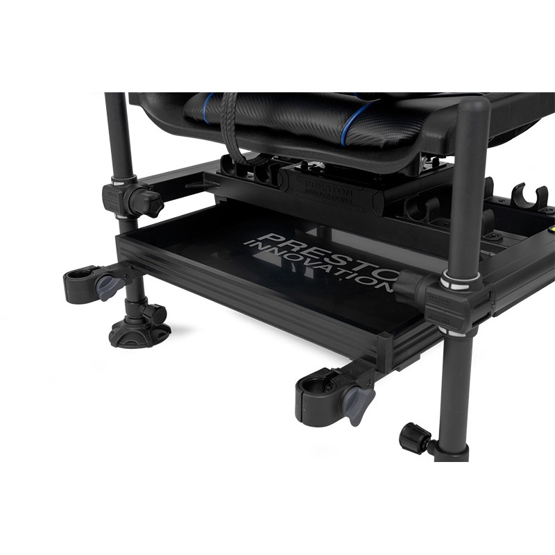 Eine leichte Version der Angelstation, die Ignition 360, ist mit einem 360°-drehbaren Sitz und vier Teleskopfüßen ausgestattet.
