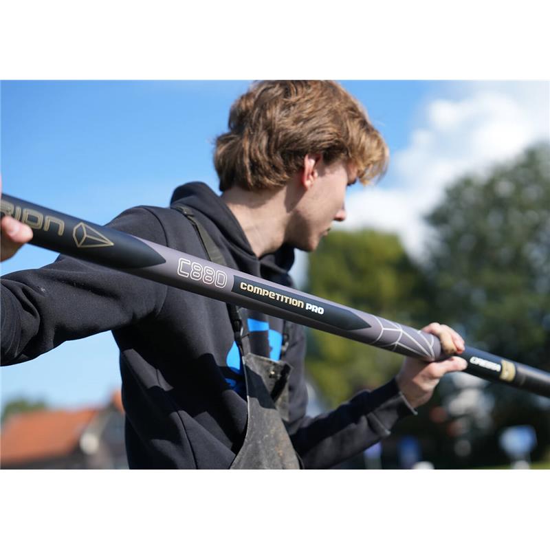 Die Centurion Competition Pro C880 ist eine Rute, die für ernsthafte Angler entwickelt wurde, die viele Stunden an Kanälen, Flüssen oder auf offenen Seen verbringen. Sie bietet ein perfektes Gleichgewicht zwischen Kraft, Kontrolle und Zuverlässigkeit unter allen Bedingungen. Mit ihrer schnellen und lebhaften Aktion stellt diese Rute sicher, dass Ihnen kein einziger Biss entgeht, egal ob Sie auf Brachse, Rotauge oder Silberbrasse angeln. Ihre robuste Bauweise in Kombination mit einer hervorragenden Balance macht sie auch bei starkem Wind, in schnell fließendem Gewässer oder bei schwereren Montagen angenehm handhabbar. Die Pro C880 richtet sich nicht an Gelegenheitsangler, sondern an diejenigen, die hohe Leistungsansprüche an ihre Ausrüstung stellen, mit Details wie einer oberen Hülse aus PTFE (Ø 2,85 mm) für eine geschmeidige elastische Bewegung bei minimaler Reibung und glatt verarbeiteten, präzise gefertigten Sektionen für schnelles und müheloses Auf- und Abbauen. Erhältlich in 11,5 und 13,0 Metern – Längen, die ideal für natürliche Gewässer sind – kann sie mit einem optionalen Power-Kit erweitert werden, das einen verstärkten Bereich für einen Abrissschlitz beinhaltet, perfekt, um größere Fische unter schwierigen Bedingungen anzuvisieren. Das Komplettset enthält alles, was Sie zum Start benötigen: die Rute, die Mono-Verlängerung, die Top-Kits, ein Cupping-Kit und ein robustes Blackthorne-Futteral für einen sicheren und organisierten Transport. Ob Sie geschützt an einem schmalen Kanal oder windoffen an einem großen See angeln – die Centurion Competition Pro C880 wird Sie nicht im Stich lassen. Sie ist eine zuverlässige, reaktionsschnelle Rute, gebaut für echte Angler, die bei jedem Erreichen des Ufers Präzision, Leistung und Kontrolle erwarten.