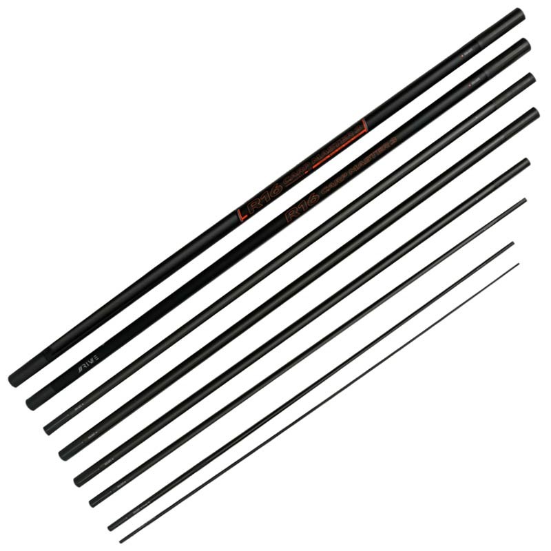 Eigenschaften : • 11,50 tatsächliche Meter mit Mini-Ext. • 12,80 tatsächliche Meter ohne Mini-Ext. • 13,00 tatsächliche Meter mit Mini-Ext. • 16,00 tatsächliche Meter ohne Mini-Ext. • Neuer Typ verstärkter Kohlefaser • Power-Kit mit Spitze Ø 4,5 mm • Becher-Kit mit Gewinde • Hochmodulige japanische Kohlefaser • Kit mit bohrbaren Verstärkungen • 100% kompatibel mit der R-16-Serie