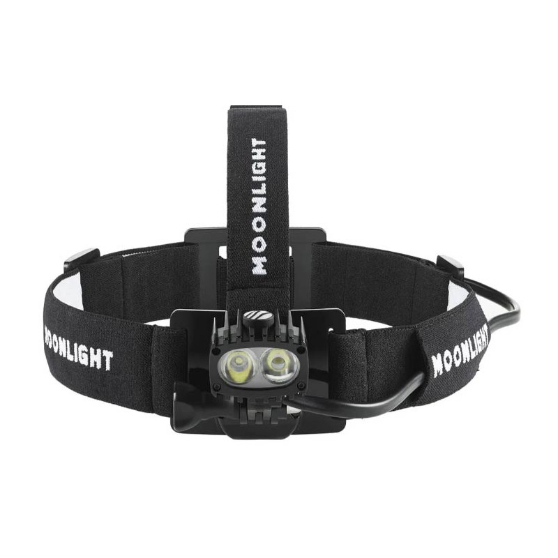Technische Daten : • Tatsächliche Lumen : 2000 • Lichtverteilung : 2 x 15° • Lampenkopf : Aluminiumlegierung 6061‑T6 • Batteriegewicht : 186 g. • Batterietyp : 2 x 21700 - 9 600 mAh / 3,7 V (36 Wh) • Stirnbandtyp : Kompakt • Gesamtgewicht der Lampe : 347 g. • Laufzeit je Helligkeitsstufe - 2000 Lumen : 1 h30 min ; - 1000 Lumen : 3 h ; - 500 Lumen : 6 h ; - 100 Lumen : 20 h • Montage : Kompatibel mit dem QuickClip‑System von GoPro • Schutzart : IP67