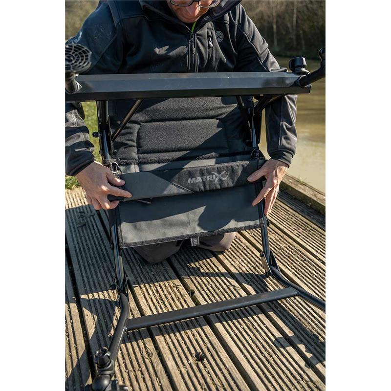 • Für komfortables Feeder- oder Posenangeln konzipiert. • Zwei vordere, 25 mm verstellbare Beine, um sicherzustellen, dass der Sitz immer waagerecht steht. • Ausziehbare Hinterbeine für eine perfekte Positionierung der Sitzfläche • Die vorderen Beine ermöglichen die Montage von Ablagen und Rutenauflagenarmen. • Gepolstertes Sitzkissen. • Die ultraleichte Bauweise erleichtert längere Fußmärsche. • Lässt sich flach zusammenklappen für einfachen Transport • Wird mit einem abnehmbaren Schulterriemen und einer Gurtaufbewahrung unter dem Sitz geliefert. • Gewicht 4,8 kg • Abmessungen Offen – L61 x H78 x L61cm / Geschlossen L61 x H18 x 61cm • Hauptmaterial 100 % Polyester / Polsterung 100 % Polyurethan