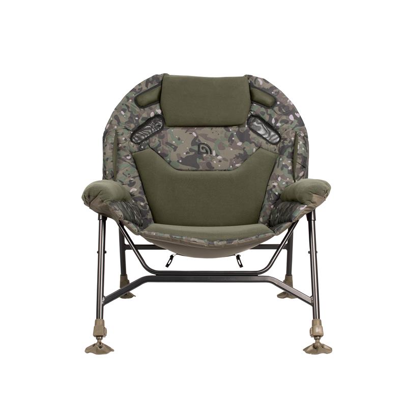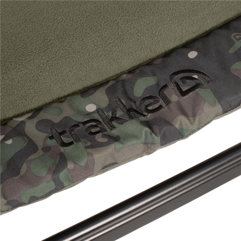 • Ergonomischer, super bequemer Stuhl mit Memory-Schaum-Unterstützung in den Schlüsselbereichen • Armlehnen aus weichem Fleece für zusätzlichen Komfort • Unglaublich leicht für einen Luxusstuhl, wiegt etwas über 6 kg ! • Sehr schnell in der Anwendung: einfach entriegeln und entfalten • Einzigartiger, patentierter Beinmechanismus - drücken Sie den Knopf und sie stellt sich in Position • Klettverschlüsse zur Verwendung mit einer Aufbewahrungstasche für Bedchair (separat erhältlich) • Finish im maßgeschneiderten Trakker-Tarnmuster • Abmessungen : Rückenlehnenhöhe : environ 68 cm, Sitzhöhe : 35-45 cm, Sitzbreite : 56 cm • Gewicht : Environ 6,2 kg, maximale Belastung 130 kg (bei normaler Nutzung) • Material : Außen 100% Polyester • Kompatibel mit : Gepolsterter Schulterriemen 210215