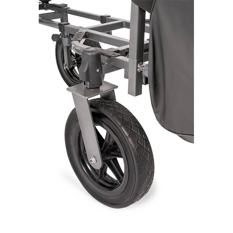 Nachdem wir mit unseren originellen Transportwagen den Markt kräftig aufgemischt hatten, wussten wir, dass die nächste Generation mehr als ein einfaches Update sein musste - sie musste an der Spitze stehen. Von A bis Z innovativ konzipiert setzt der neue vierrädrige Transportwagen eine neue, kühne Referenz für den Transport von Ausrüstung. Er ist jetzt größer und wendiger als je zuvor. Dieses verbesserte Modell lässt sich außerdem kompakter zusammenfalten als sein Vorgänger. Dank seiner 360° drehbaren Hinterachsen und seiner vier robusten Geländereifen fährt er mit Leichtigkeit und Präzision über jedes Gelände. • Hecklenkung 360° : unabhängige Hinterachsen bieten verbesserte Manövrierfähigkeit und einen engen Wendekreis. • kompakte Aufbewahrung : ein ausziehbarer Mittelabschnitt ermöglicht es dem Wagen, sich kompakter zusammenzufalten als sein Vorgänger. • wetterfeste Aufbewahrung : das Hauptfach ist mit einer mit Reißverschluss versehenen, wasserdichten Abdeckung ausgestattet, um Ihre Ausrüstung zu schützen.