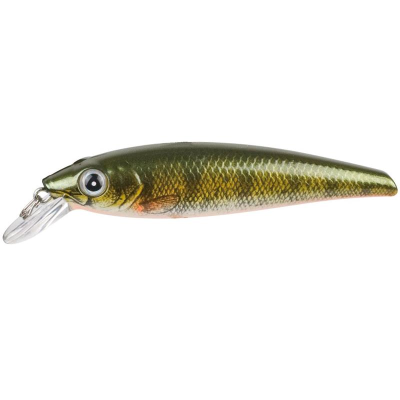 Ein sehr schlanker Wobbler “Twitchbait” ausgestattet mit einer kleinen Schaufel, mit Federn und und mit vibrierenden und klangvollen Kugeln.