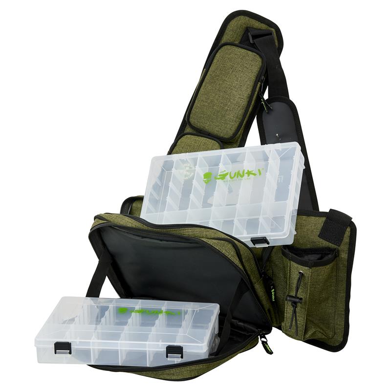 Eine ausgezeichnete Tasche, um in einer Minute vom Büro zum Angeln zu wechseln! Angenehm zu tragen und komfortabel, wird diese Tasche OVERTAKE STREET MINUTE als Umhängetasche getragen. Sie sitzt beim Angeln am Rücken und lässt Ihnen völlige Bewegungsfreiheit. Drehen Sie sie einfach nach vorne, um schnell an das darin gelagerte Material zu gelangen. Geliefert mit zwei Boxen 27.5x19.5x4.5cm ermöglicht sie eine organisierte Aufbewahrung Ihrer Köder und Kleinteile. Sie bietet eine Vielzahl von Taschen in unterschiedlichen Formaten, um deren Verteilung zu optimieren. D-Ring zur Befestigung und / oder Sicherung von Zubehör. Praktisch, ästhetisch und effektiv!