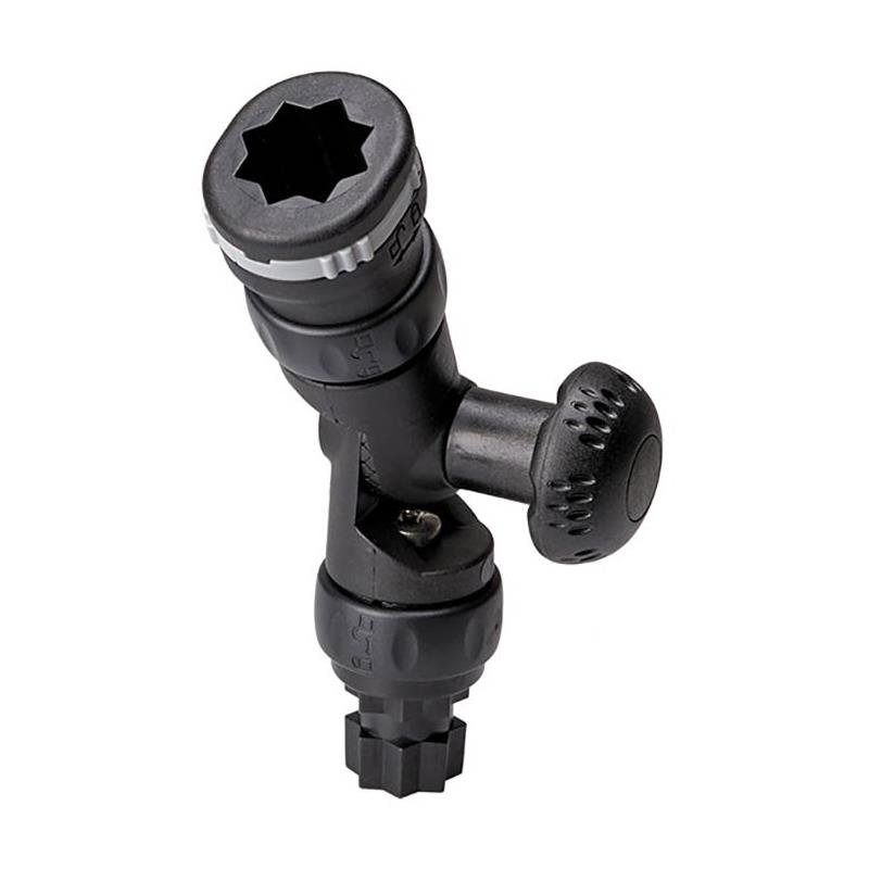 mit 2 r-lock-Verriegelungssystemen, an der Basis und am oberen Ende. der zentrale Drehknopf ist in Rastschritten von jeweils 15° verstellbar, die verstellbare Verlängerung bietet große Anpassungsfähigkeit. gekoppelt mit einem der Zubehörteile aus der railblaza-Reihe hilft er Ihnen, eine Taschenlampe, einen Echolot und viele andere Dinge zu befestigen.