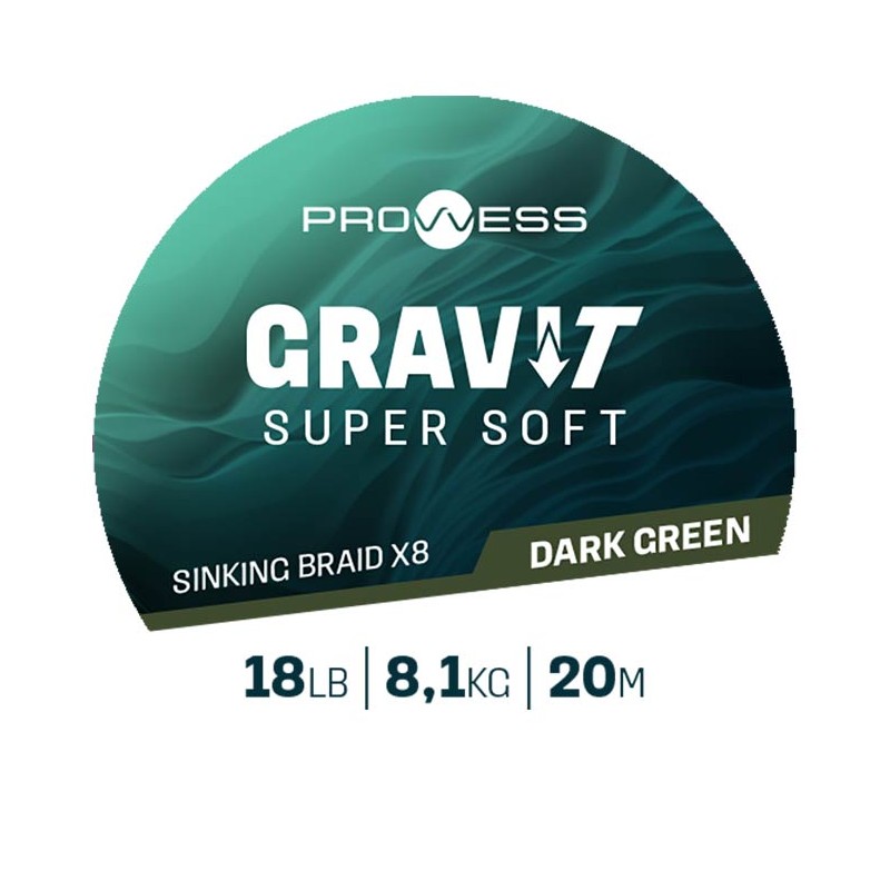 • GRAVI-T weiche sinkende geflochtene Schnur • Geflochtene, laufende Vorfachschnur • Einzigartige Konstruktion sorgt für hohe Dichte • Sehr geschmeidig • Ideal zum Erstellen unauffälliger und robuster Montagen vom Typ BOOM and LOOP sowie Montagen mit auflösbaren Beuteln • Äußerst abriebfest • 8-Strang-Geflecht für ein sehr rundes Profil • Farbe: dunkelgrün • Erhältlich in 3 Stärken 18lbs, 25lbs und 35lbs