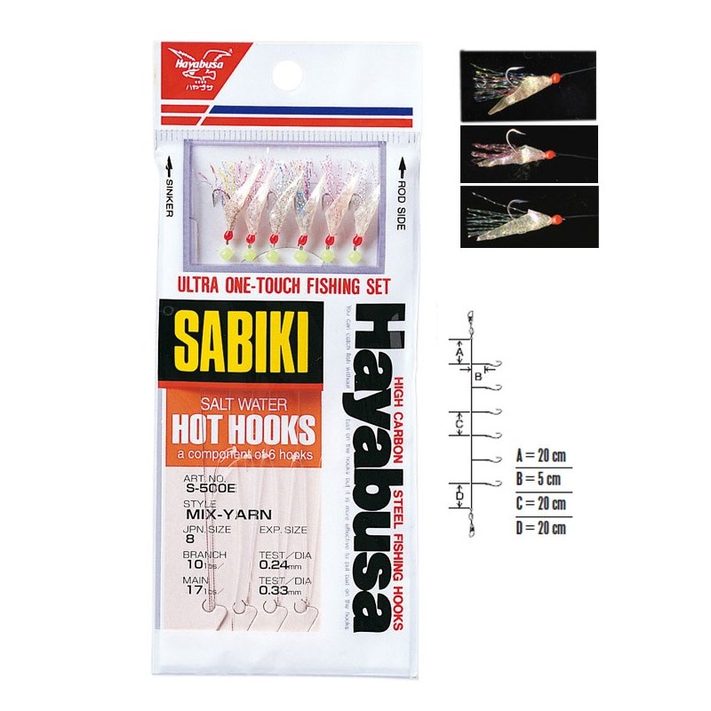 der sabiki s500e hayabusa ist mit 6 vernickelten haken ausgestattet referenz h.mrs 171