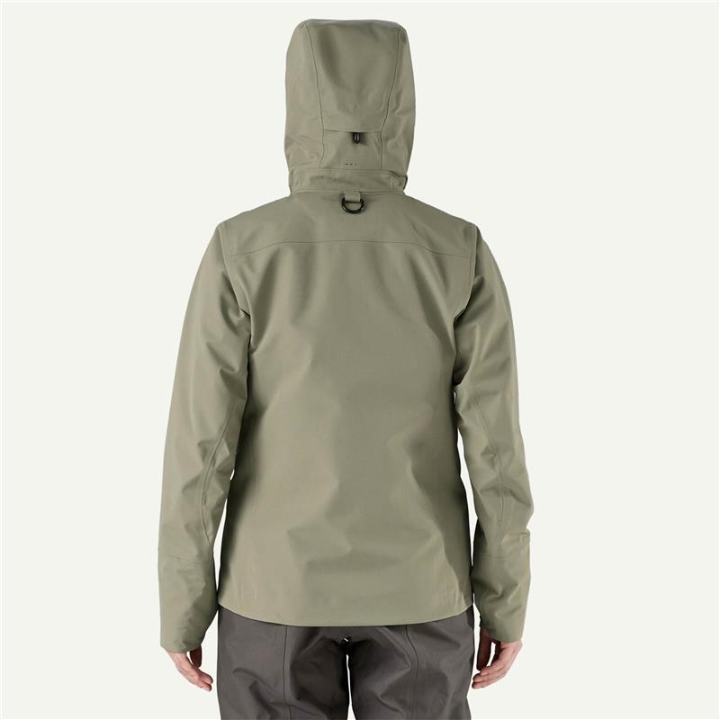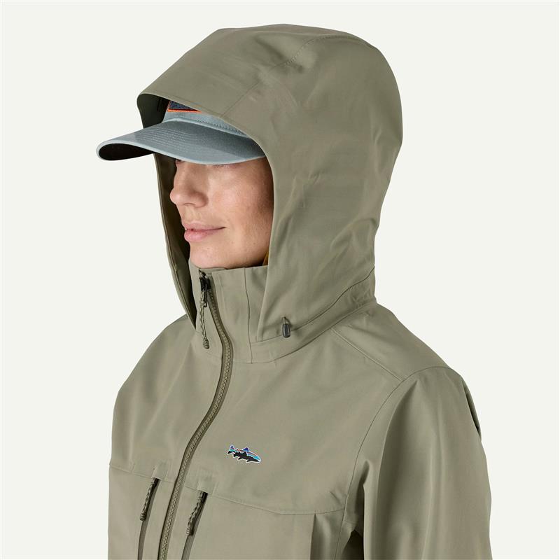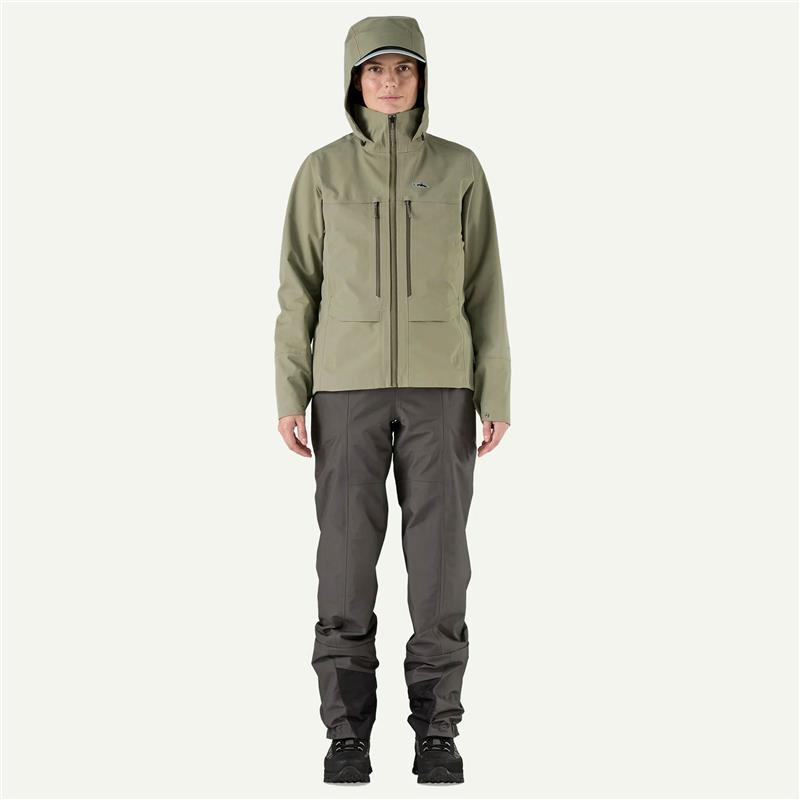 • Zwei dezent profilierte Brusttaschen mit Reißverschluss, geeignet für Fliegenboxen; Reißverschluss-Handwärmetaschen, positioniert für tiefes Waten, mit Klappen zum Schutz des Handrückens