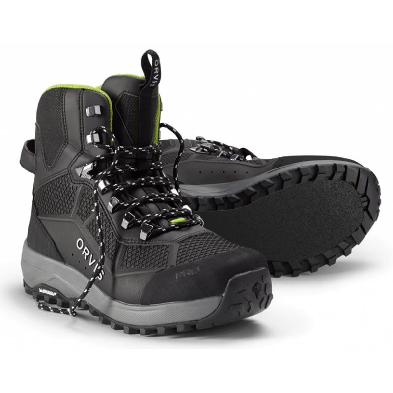 Die ORVIS Pro-Schuhkollektion spiegelt die gesamte Erfahrung und das Know-how der amerikanischen Marke im Bereich Wading-Schuhe wider. Das Fehlen von Nähten in den Reibungszonen reduziert den Verschleiß dieser leichten, im PU-Formguss hergestellten Schuhe erheblich. Sie sind in drei verschiedenen Modellen erhältlich: Das klassischste verfügt über Michelin-Sohlen, das Hybrid-Modell kombiniert Filz-/Gummisohlen und das BOA-System sorgt für optimalen Halt.