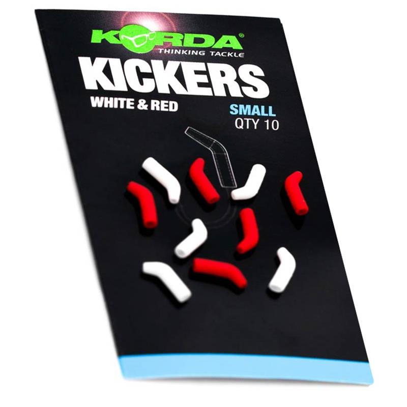 Die grüne oder braune Version ist ideal für Angler, die ihre Montage so unauffällig wie möglich tarnen möchten. Allerdings reicht auf manchen Gewässern schon ein einfaches, farbenfrohes Stück Schrumpfschlauch, das am Haken angebracht ist, aus, um Fische anzulocken. Deshalb sind auch mehrfarbige Varianten rouge/blanc und jaune/rose erhältlich, die ideal sind, um etwas Farbe an Ihren Haken zu bringen. Die Kickers bestehen aus robustem Gummi und werden in drei Größen angeboten, um an den verwendeten Haken angepasst zu werden und perfekt am Öhr zu sitzen: Small für die tailles 10 et 12, Medium für die tailles 6 et 8 und Large für die tailles 2 et 4. Wenn ein Fisch gehakt ist, richtet sich der Kicker während des Drills auf und nimmt danach wieder seine ursprüngliche Form ein, um erneut einsatzbereit zu sein. Die Kickers werden im Zehnerpack verkauft.