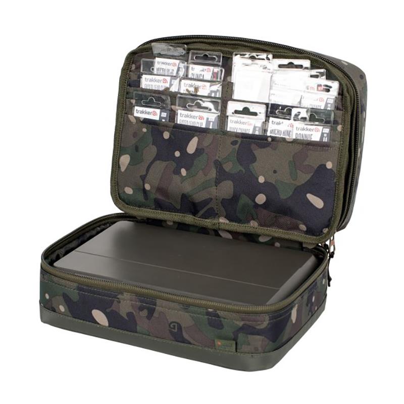 Die nxc rig-r box ist eine komplette Montage-Station für Angelvorfächer! Verstauen Sie Ihre Tackle-Box, Ihr Terminalzubehör und andere wichtige Karpfenausrüstungsgegenstände organisiert in einem einzigen Gepäckstück. Für all Ihre Vorfach-Montageanforderungen haben wir ein vollständig magnetisches Montagebrett aus eva beilegt, das am äußeren Deckel durch vier Magnete befestigt ist, die in jeder Ecke des Brettes positioniert sind. Wenn Sie es bevorzugen, kann es entfernt und innen verwendet werden, während Sie Zugang zu Ihrer Tackle-Box oder anderen Angelausrüstungsgegenständen haben. Das magnetische Montagebrett kann auch völlig unabhängig oder in Kombination mit anderen trakker-Taschenartikeln verwendet werden.
